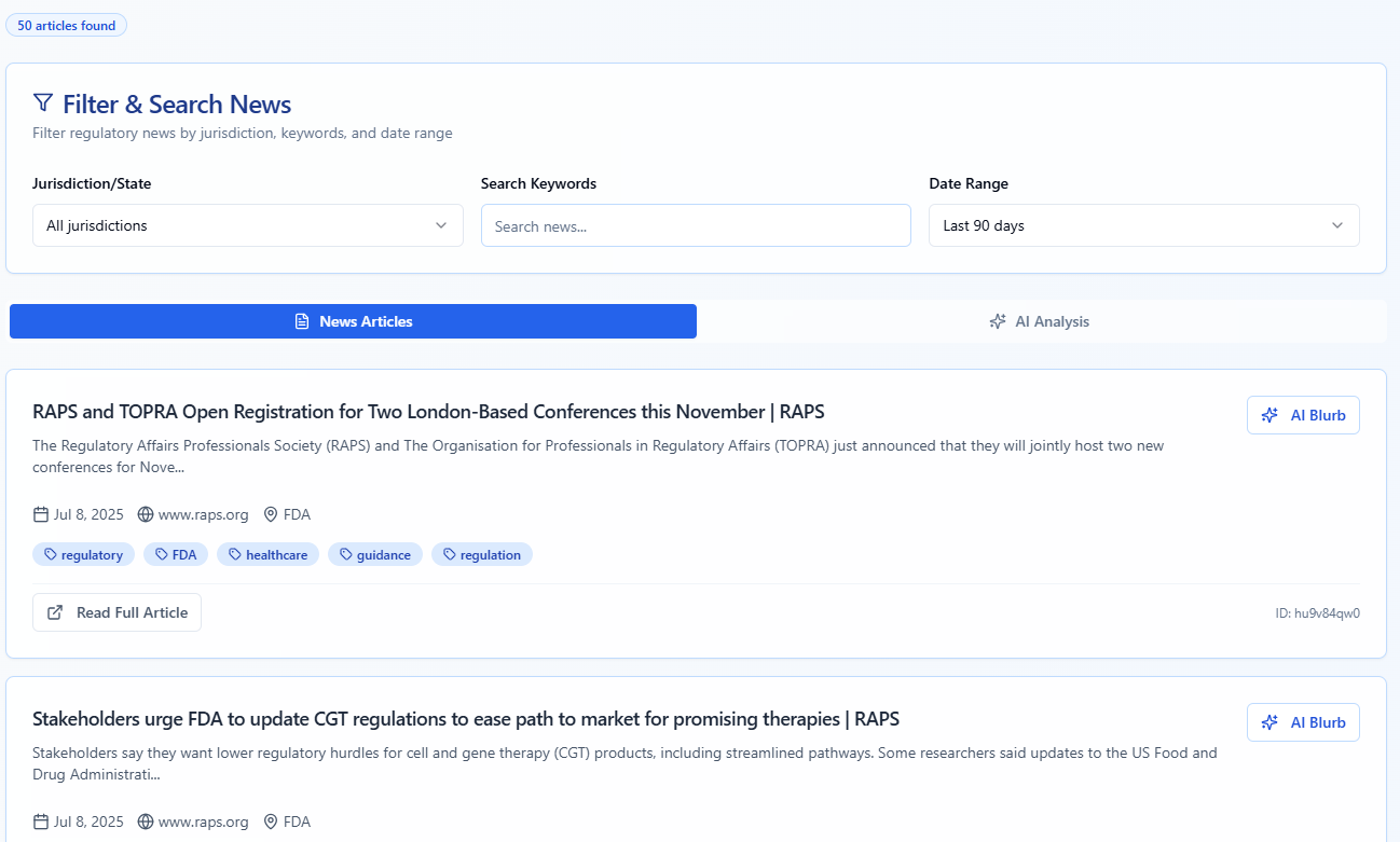 I built a powerful compliance monitoring platform for the pharmaceutical space. It aggregates and analyzes regulatory content from multiple sources and provides intelligent sorting, filtering, and analysis—all without relying on generative AI.
