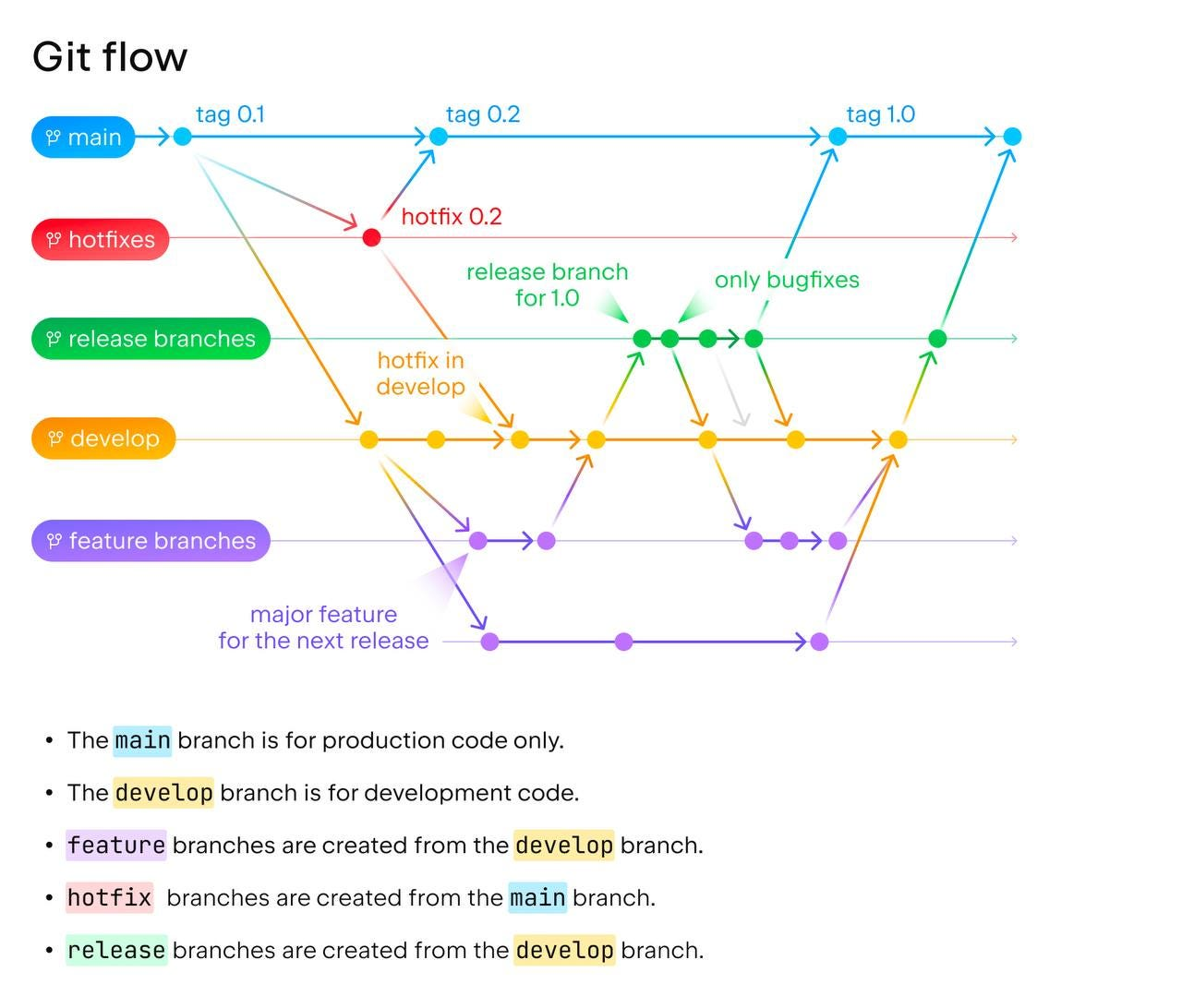 It’s a good balance but still requires frequent merges, making it closer to TBD than GitFlow.